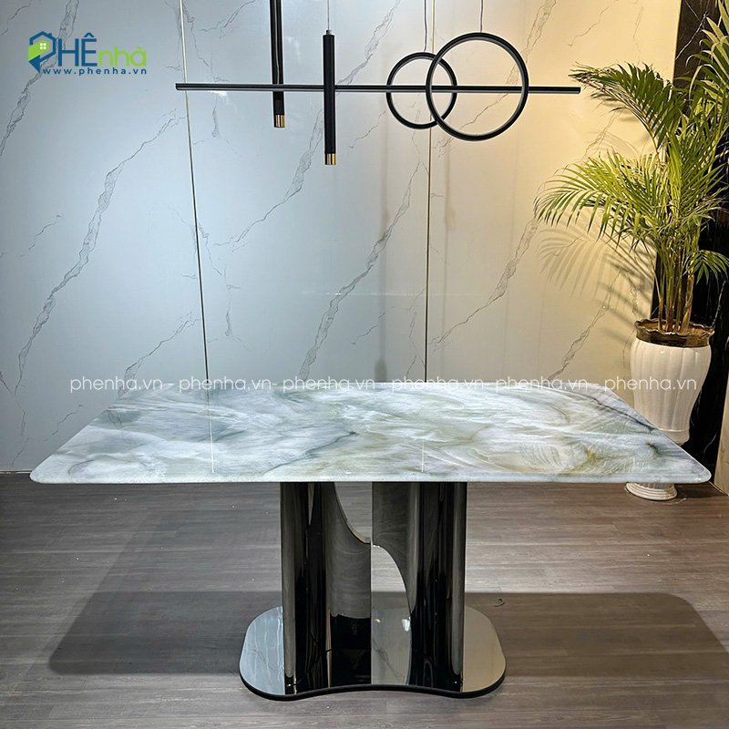 Bộ bàn ăn mặt đá có tổng thể thiết kế mang phong cách hiện đại phù hợp với mọi không gian nội thất