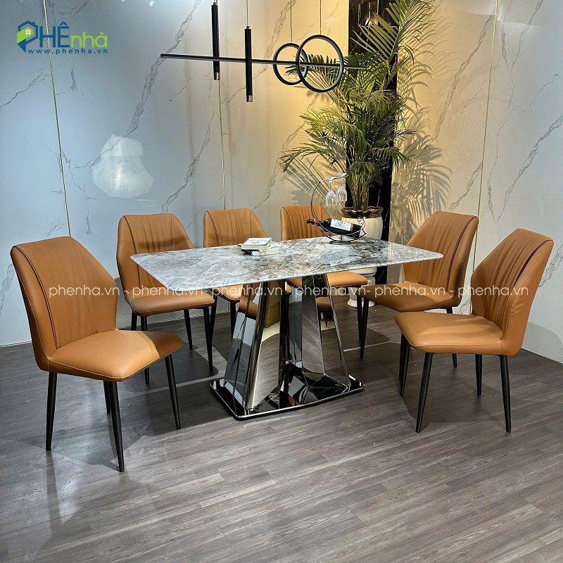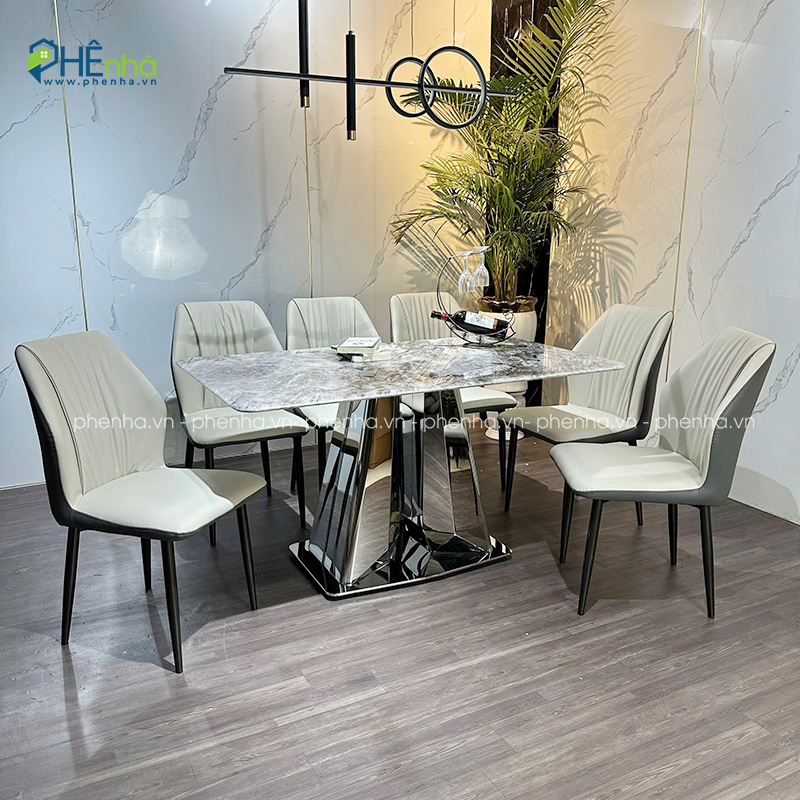 Với mẫu bàn ăn mặt đá tuyệt đẹp này, gia chủ có thể tùy chọn bộ 6 ghế ăn bọc da sao cho phù hợp với sở thích. Tại Phê Nhà, hàng trăm mẫu ghế ăn bọc da Microfiber với đa dạng kiểu dáng hiện đại đang chờ bạn săn đón và tân trang không gian sống của gia đình thêm hiện đại hơn.