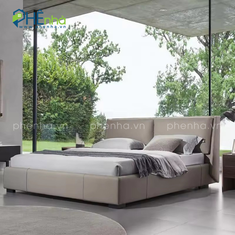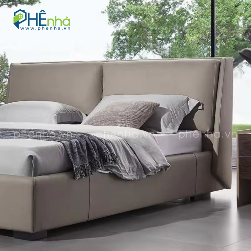 Giường ngủ có kiểu dáng hiện đại, đơn giản với đường nét gọn gàng, tinh tếGiường có màu nâu trang nhã, dễ dàng kết hợp với các món đồ nội thất khác trong phòng ngủKhung giường được làm từ gỗ công nghiệp được xử lý kỹ càng, thiết kế chân bệt chắc chắn, chịu lực tốtGiường được bọc da màu nâu sang trọng, mang lại cảm giác ấm áp và thoải máiGiường có kết cấu vững chắc, đảm bảo độ bền bỉ theo thời gian. Nệm giường được làm bằng chất liệu cao cấp, mang lại cảm giác êm ái và thoải mái khi ngủGiường ngủ bọc da Hàn Quốc cao cấp, có khả năng chống thấm tốt, dễ dàng lau chùi khi có bụi bẩn