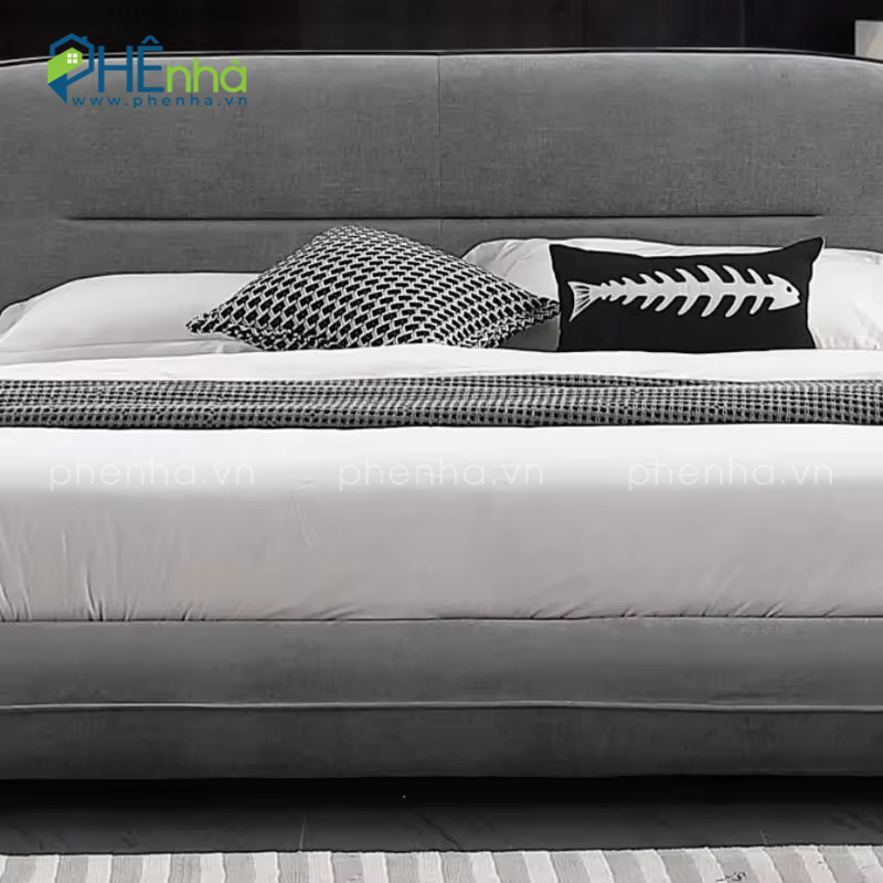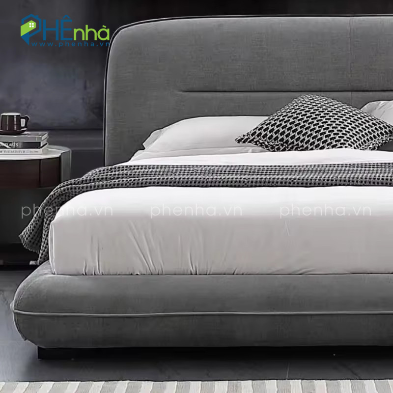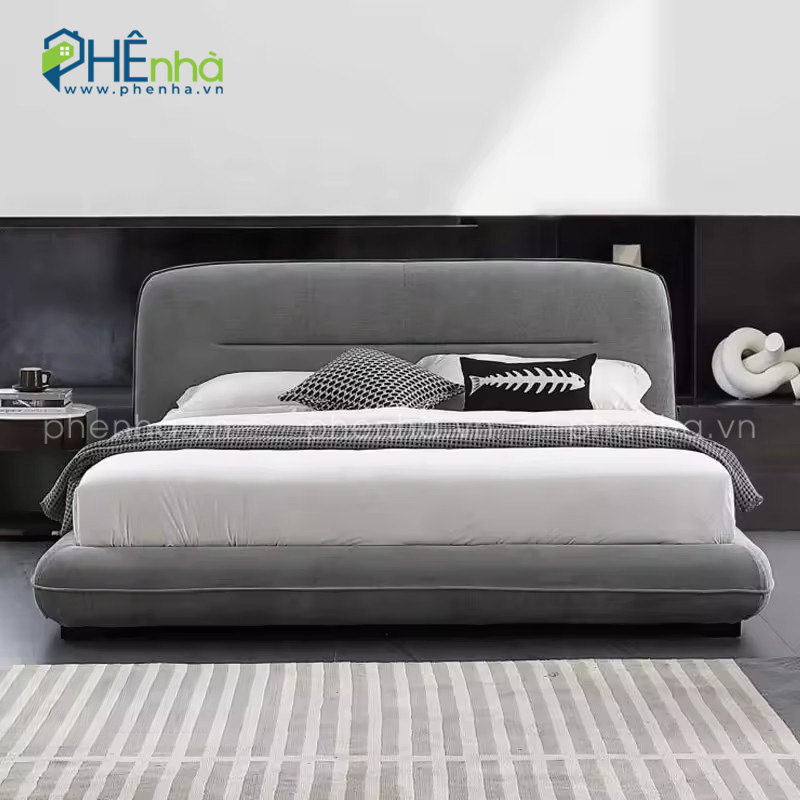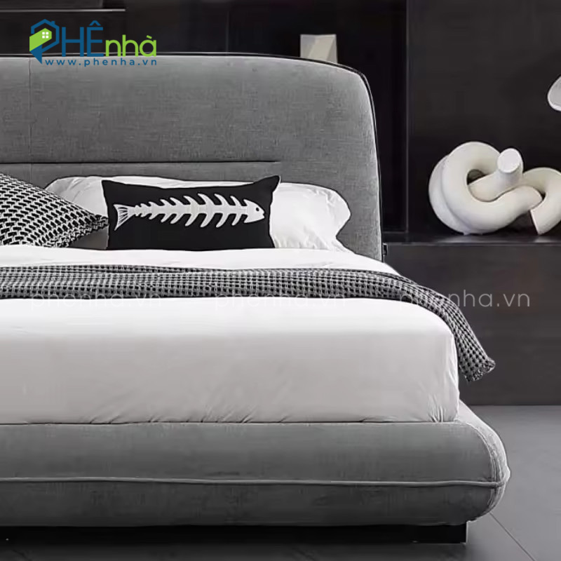 Giường ngủ bọc nỉ viền nổi màu xám trắng – GN26