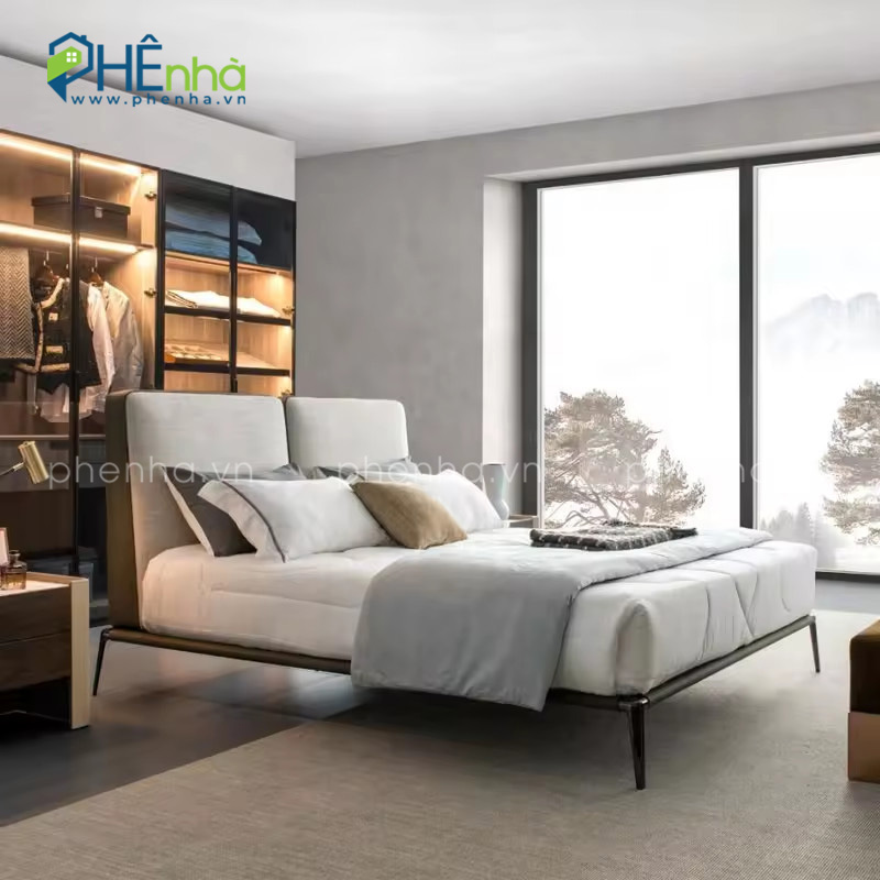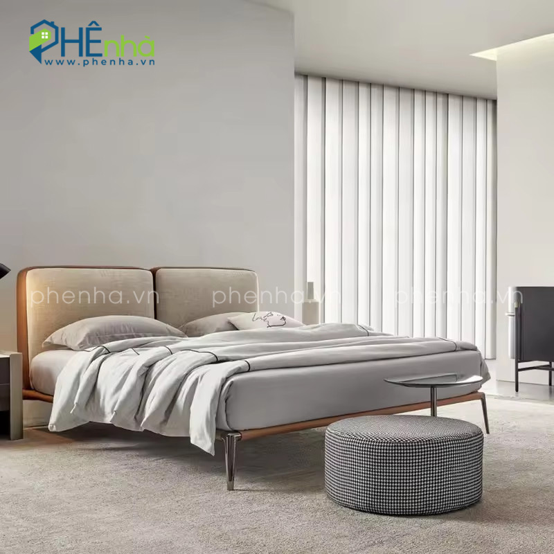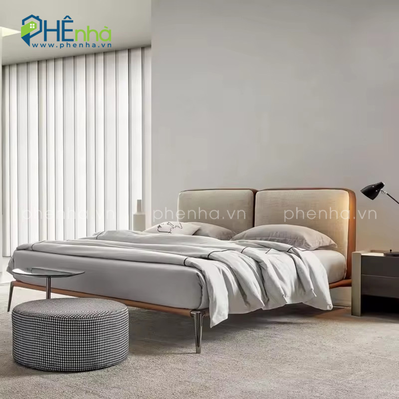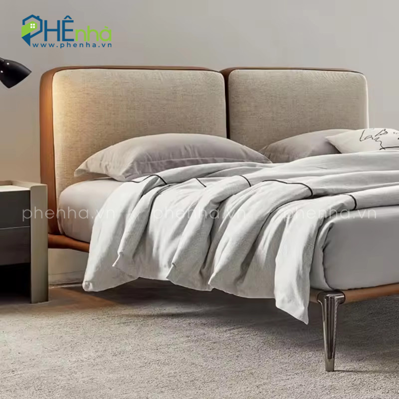 Giường ngủ GN38 được thiết kế đơn giản, hiện đại. Sản phẩm được bọc vải nỉ cao cấpVải nỉ có đặc tính mềm mại và êm ái, mang lại cảm giác thoải mái khi tiếp xúc. Điều này đặc biệt quan trọng đối với giường ngủ, nơi bạn dành phần lớn thời gian để nghỉ ngơi và thư giãnĐầu giường bọc vải nỉ, được thiết kế 2 khối bằng nhau, tạo điểm cho toàn bộ sản phẩmSản phẩm là sự kết hợp giữa hai màu sắc kem và nâu, giúp cho giường ngủ toát lên sự thanh lịch, tinh tếChân giường được làm chất liệu thép sơn tĩnh điện chống gỉ. Trường hợp khách hàng muốn thay đổi sang chân inox mạ PVD, hãy liên hệ trực tiếp với Phê Nhà để được tư vấn chi tiếtMẫu giường ngủ này có kích thước nhỏ, thiết kế gọn gàng, phù hợp với gia đình thiết kế nội thất theo phong cách tối giản hoặc những căn chung cư khiêm tốn về diện tích