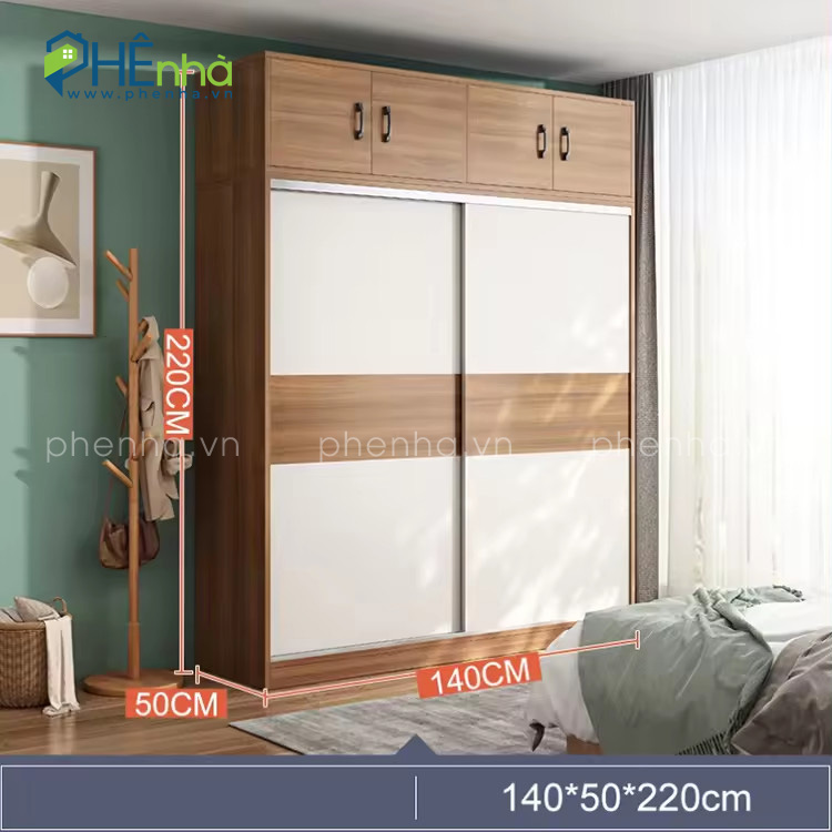 Tủ quần áo gỗ công nghiệp kịch trần cửa trượt 2 cánh hiện đạiKích thước tủ quần áo TA15: Rộng 190cm x cao 220cm x sâu 50cmMẫu tủ quần áo đơn giản hơn, không kèm kệ góc kích thước rộng 140cm x cao 220cm x sâu 50cmThay vì phải mở rộng cánh cửa như tủ quần áo cánh mở, tủ quần áo cửa trượt chỉ cần thao tác trượt nhẹ nhàng dọc theo thanh rayTủ quần áo cửa trượt 2 cánh không kịch trần kích thước rộng 100cm x dài 180cm x cao 50cmThanh treo quần áo chắc chắn có độ bền cao, khả năng chịu tải tốt và không bị cong vênh theo thời gian