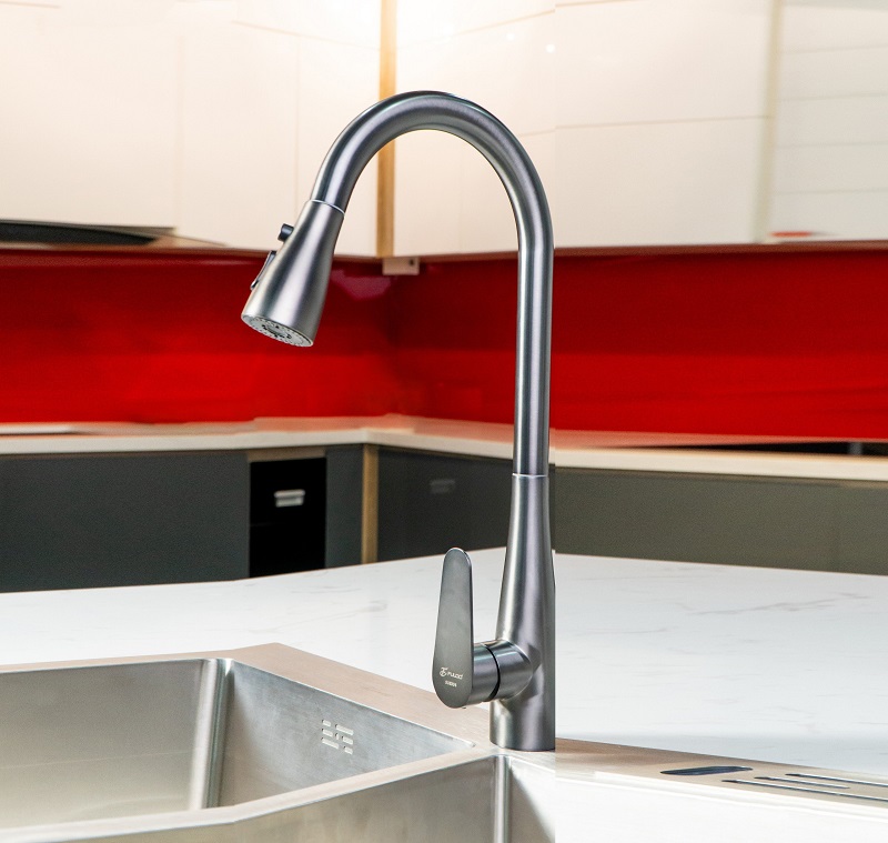 Chức năng: Nóng lạnh + Rút dây + Đầu vòi khớp xoay + 2 chức năng Sprayer (Dòng chảy phun mưa, tạo bọt khí) + Xoay 360 độ