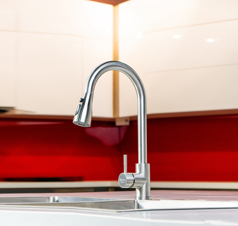 Chức năng: Nóng lạnh + Rút dây + Đầu vòi khớp xoay + 2 chức năng Sprayer (Dòng chảy phun mưa, tạo bọt khí) + Xoay 360 độ